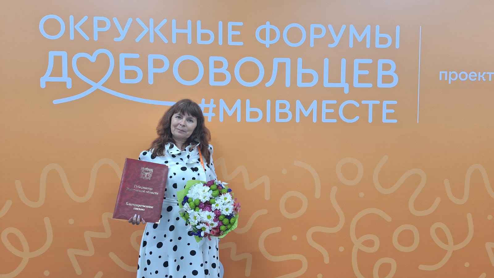 Благодарственное письмо из рук губернатора Василия Голубева получила Инна Саханина – старшая сестра милосердия, помощник протоиерея Романа Амплеева, настоятеля Донского храма, благочинного Новошахтинского округа, руководителя отдела по взаимоотношениям Церкви с обществом. Высокая награда была вручена за активную добровольческую и благотворительную деятельность, укрепление традиций взаимопомощи в Ростовской области.