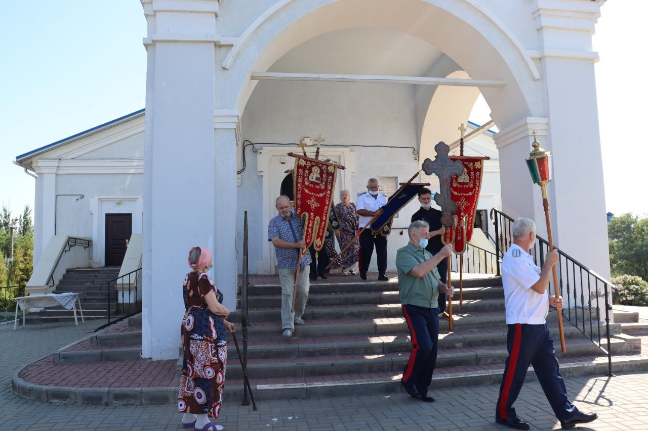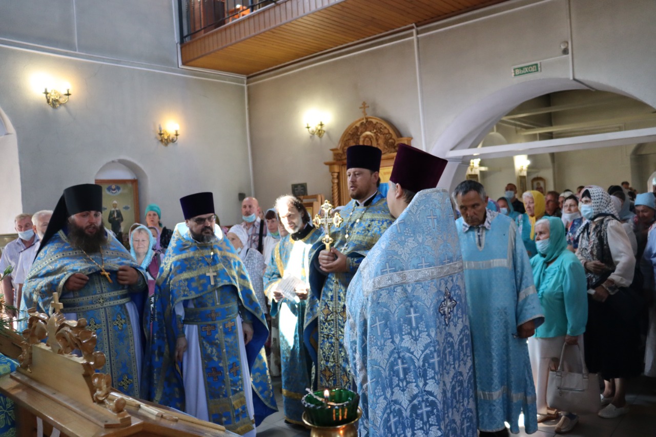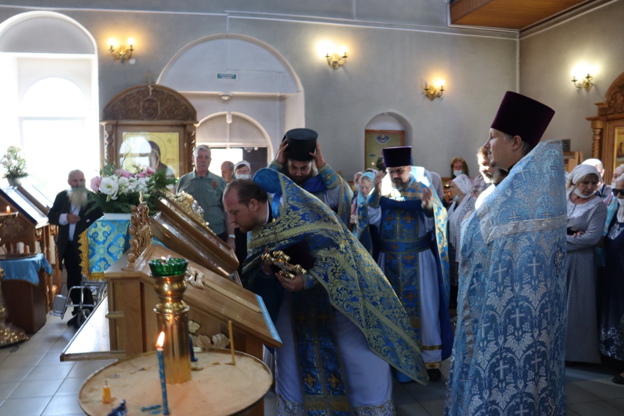 Духовенство и прихожане во главе с благочинным совершили крестный ход, прославляя Царицу Небесную, Покровительницу храма.