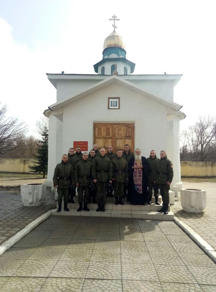 После совершения богослужения в войсковом храме в честь святого благоверного князя Димитрия Донского и молебна священник обратился к солдатам с напутственным словом и поздравлением.