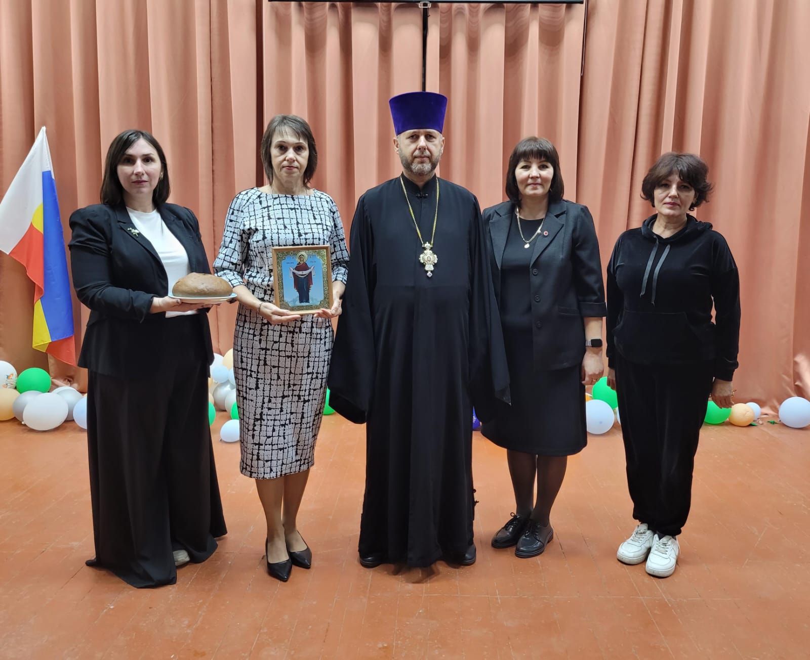 На мероприятии присутствовали: настоятель храма святых мучеников Адриана и Наталии х. Арпачин протоиерей Роман Мясников, директор школы, классный руководитель, родители, учащиеся школы, а также работники местного дома культуры.