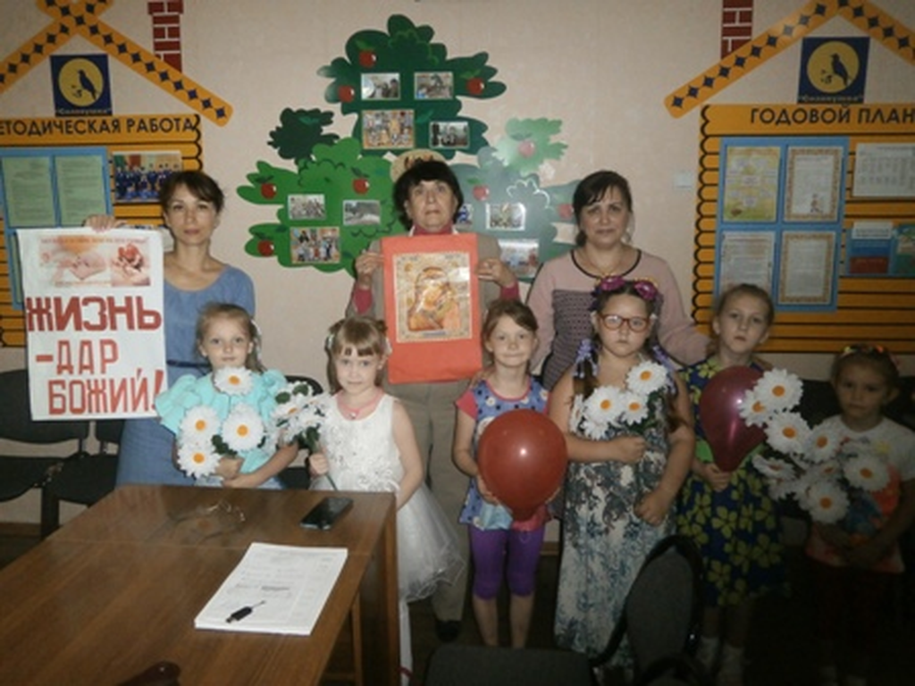 В детском саду «Соловушка» г. Донецка родительский молодежный духовный клуб «Свет добра» провел акцию «Мама, сохрани жизнь ребенка!», направленную на обращение внимания молодых родителей на укрепление семьи, защиту жизни и здоровья ребенка.