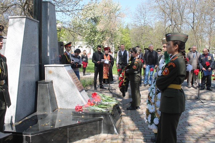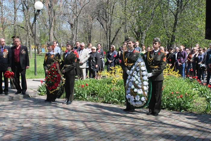 К памятнику шахтинцам-участникам ликвидации последствий аварий на АЭС и других объектах особого риска были возложены венки и цветы.