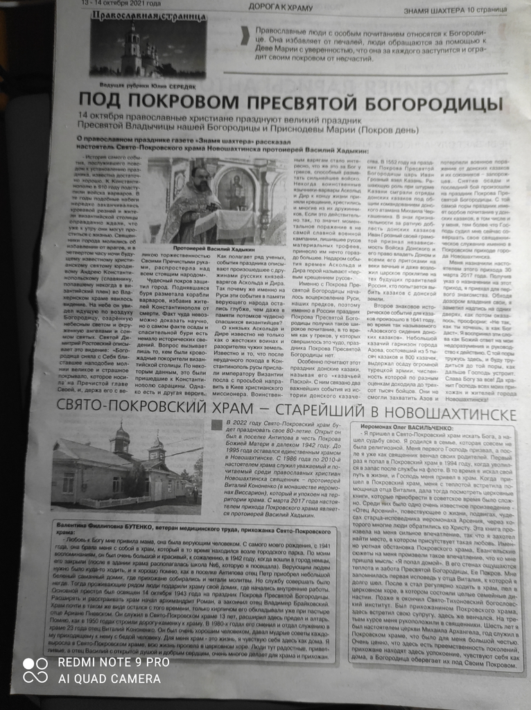 В городской газете г. Новошахтинска «Знамя Шахтера» вышел очередной выпуск православной страницы, который был подготовлен совместными усилиями редакции газеты и Покровского храма г. Новошахтинска.
