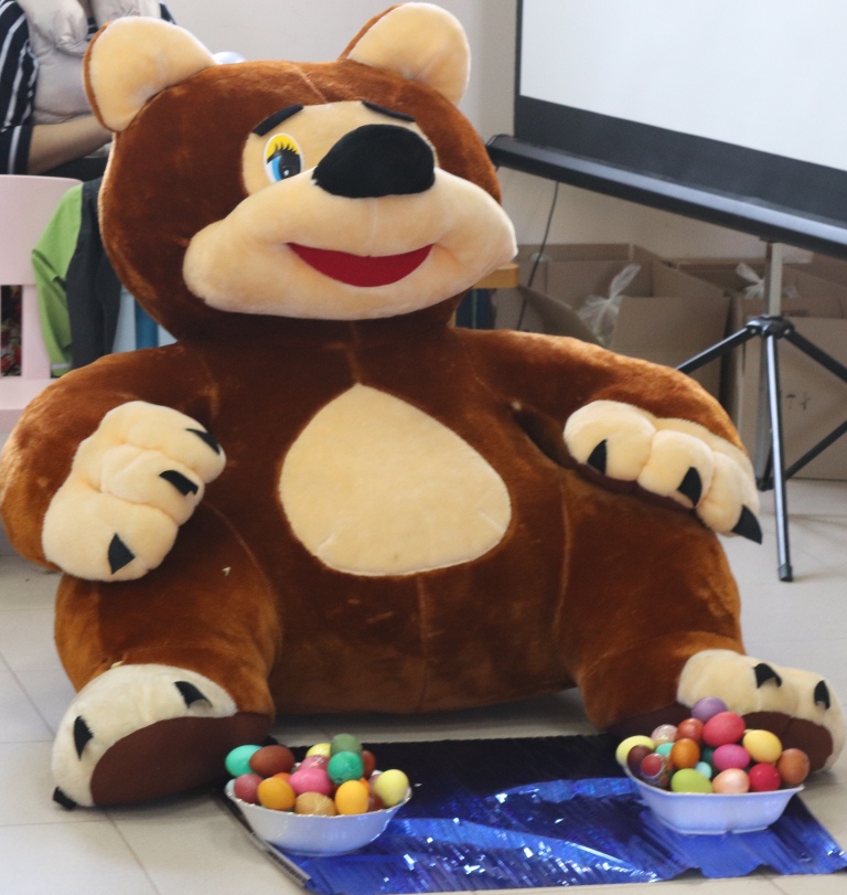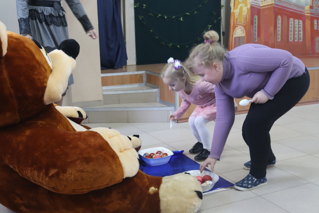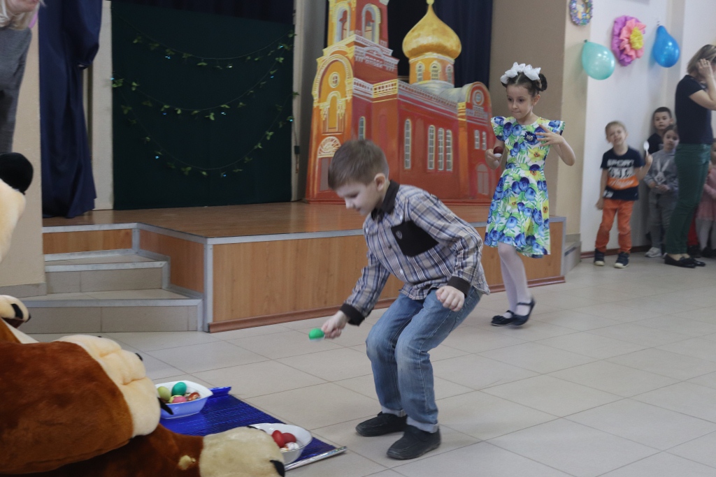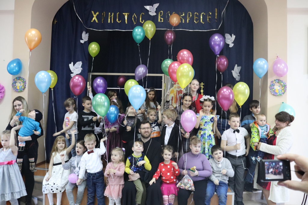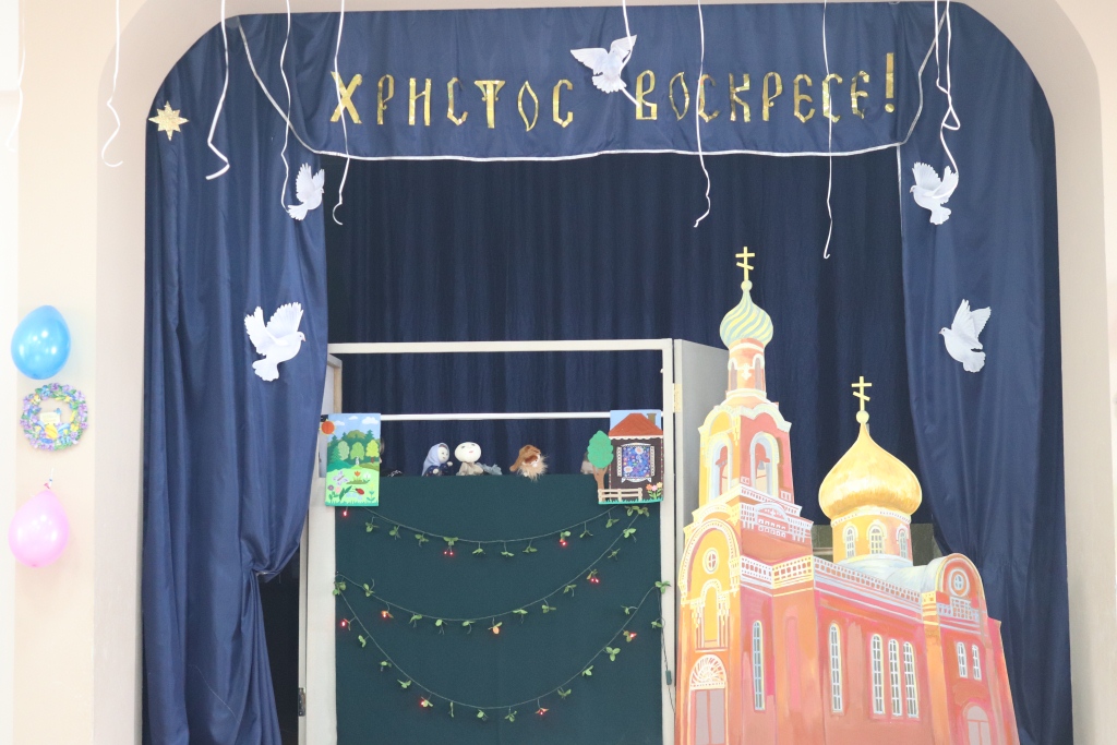 В начале праздничного действа перед собравшимися выступил с поздравлением и назидательным словом клирик Свято-Покровского прихода иерей Александр Шляхетский. Далее для раскрытия смысла праздника был продемонстрирован мультипликационный фильм, рассказывающий о Воскресении Христовом.