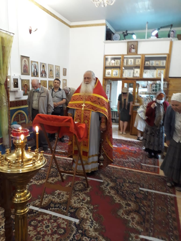 Во время богослужения были вознесены сугубые молитвы о здравии Предстоятеля Русской Православной Церкви, Святейшего Патриарха Московского и всея Руси Кирилла.
