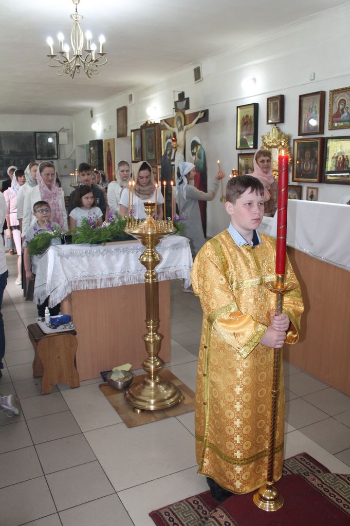 Подобные богослужения уже стали доброй приходской традицией. Выпускники воскресной школы храма принимали в Литургии самое активное участие – мальчики в качестве пономарей, а девочки в качестве певчих.