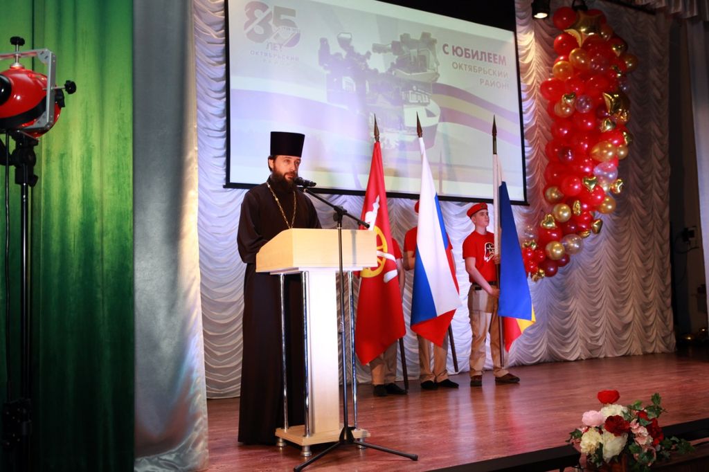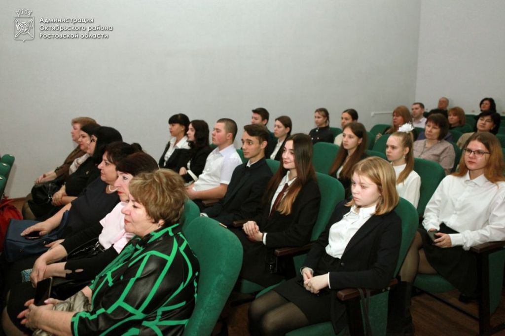 Со словами поздравления к присутствующим обратились Председатель Собрания депутатов - глава Октябрьского района Е.П.Луганцев, глава Администрации Октябрьского района Л.В.Овчиева, начальник отдела образования А.А.Тараско, благочинный приходов Нижнедонского округа протоиерей Сергий Яценко.