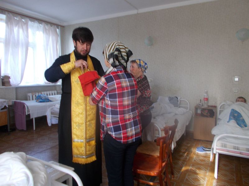 В праздник святителя Николая Чудотворца сестры милосердия сестричества имени Царственной страстотерпицы Александры Романовой при храме Державной иконы Божьей Матери Донецкого благочиния Алексанова Т.П., Пыдык О.П. и Шкандыбина В.В. посетили центральную городскую больницу, неврологическое отделение. Ими была проведена беседа о святителе Николае Чудотворце. Затем они помогли подготовиться постояльцам к исповеди, ответили на все вопросы об исповеди и причастии. На следующее утро протоиерей Александр Барановский исповедл и причастил желающих.