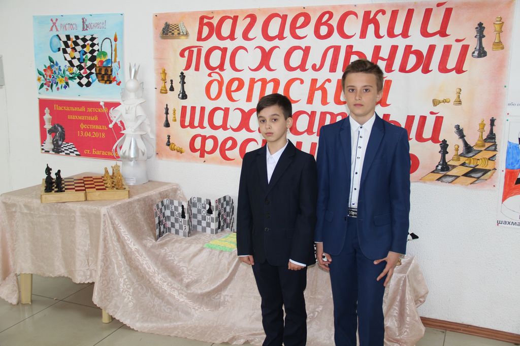 В шахматные поединки вступили команды младшего и среднего возраста школ Багаевского района. В упорной борьбе были выявлены команды-победители, которые были награждены кубками, медалями, грамотами, Пасхальными подарками. Ребята будут долго помнить участие в шахматном турнире, освященном Пасхальной радостью.