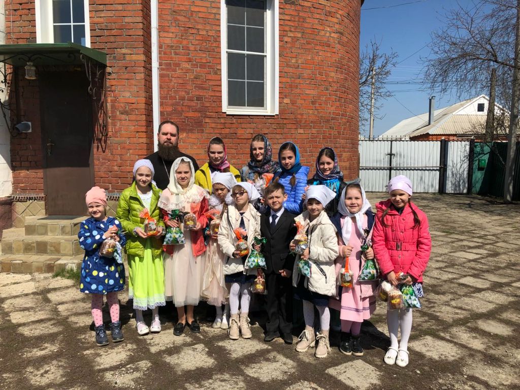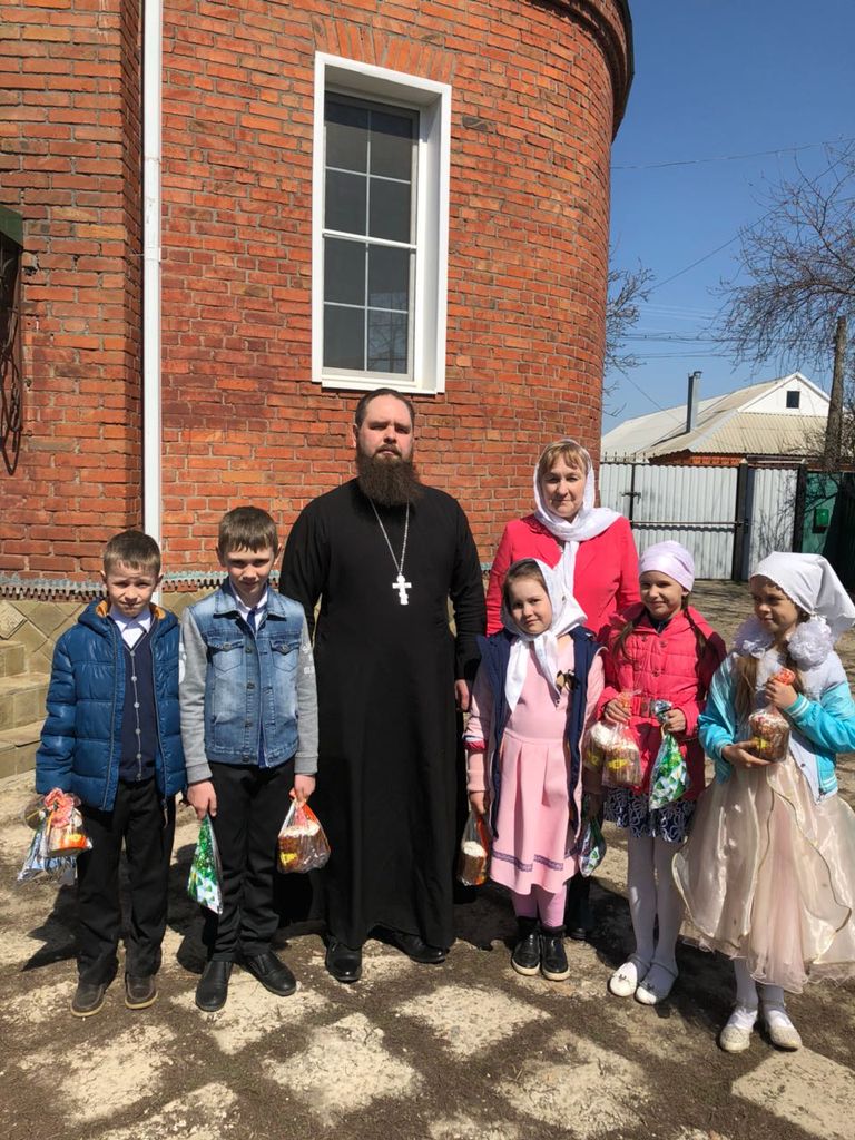 В самом начале концерта ребят и зрителей приветствовал Благочинный приходов Миллеровского округа иерей Роман Калинин. Он поздравил всех присутствующих с праздником Пасхи и вручил детям подарки и куличи, прихожан угощали душистым чаем и сладостями.