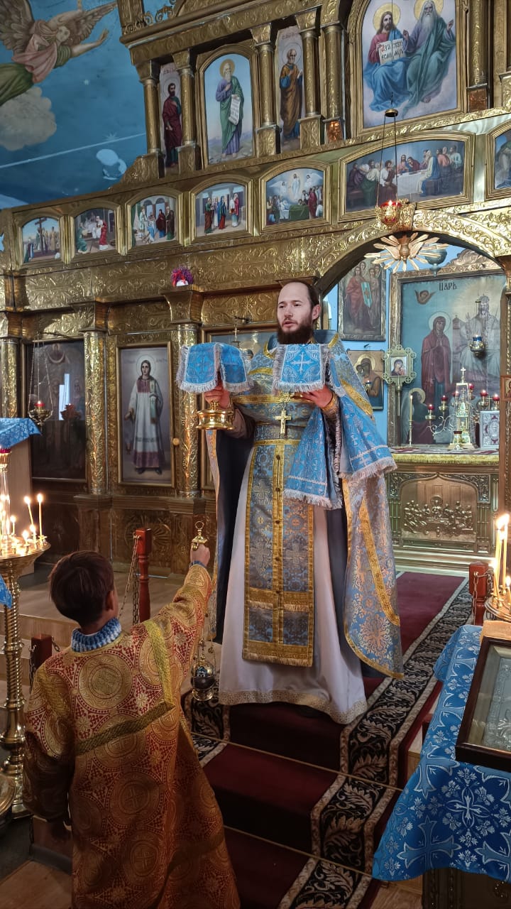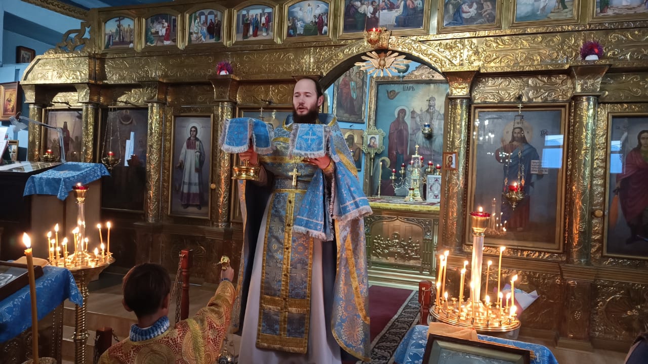 Богослужение в Свято-Покровском храме совершил настоятель прихода иерей Олег Брехов. Во время богослужения возносились особые прощения о воинстве и о мире на Святой Руси.