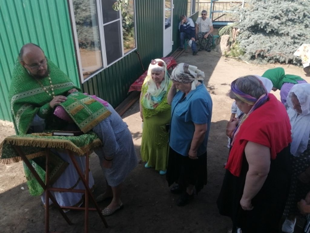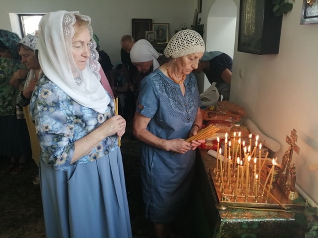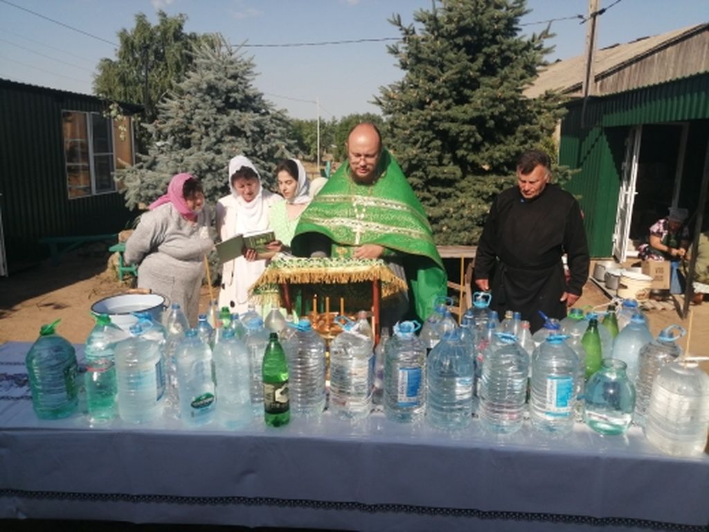 Праздничная служба началась с водосвятия, которое настоятель прихода иерей Александр Тимошенко провел на территории церковного подворья, благоухающего цветниками, украшенного ухоженными декоративными зелеными насаждениями благодаря неустанному труду и заботе верующих слободы.