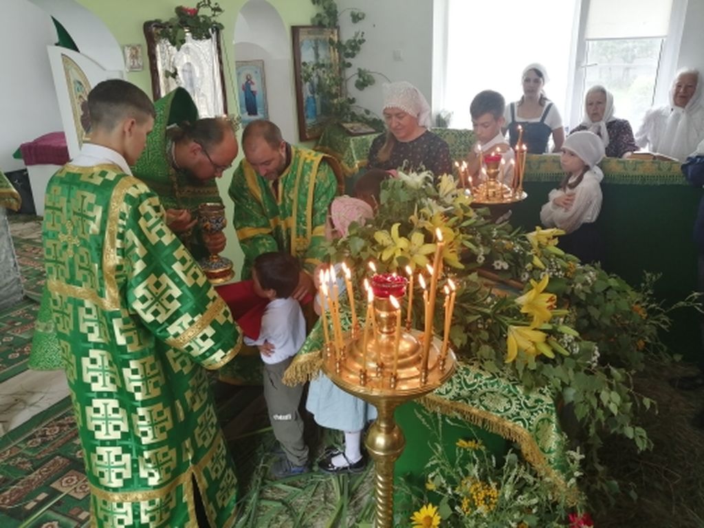 Священнослужители вместе с паствой молитвенно прославили Пресвятую Живоначальную Троицу — Бога Отца, Бога Сына, и Бога Духа Святого, а также вознесли молитву о Святой Руси. Христовых Таин в этот день причастились десятки взрослых и юных участников богослужения.