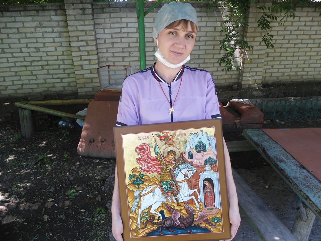 В завершение встречи протоиерей Вячеслав передал в дар больнице икону с образом великомученика Георгия Победоносца и пожелал всем, чтобы молитва к Богу являлась одной из главнейших частей духовной жизни присутствующих на встрече.