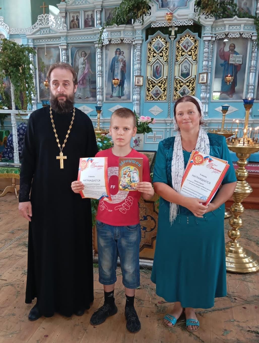 Настоятель храма, благочинный приходов Нижнедонского округа протоиерей Сергий Яценко поздравил ребят с великим праздником Святой Троицы, вручил грамоты участникам художественного конкурса детского рисунка «Духовный мир и земная красота», посвящённого празднику Пятидесятницы и подарил подарки.