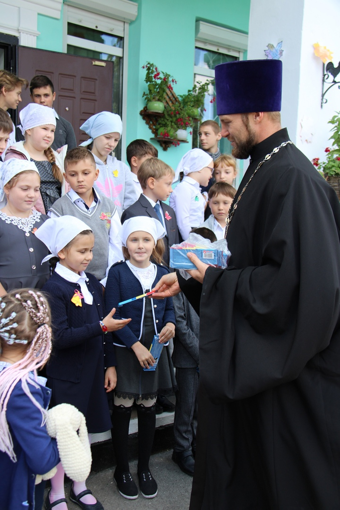 На празднике особое внимание уделили первоклассникам, они выразительно читали стихи и пели песни. Священник Леонид вручил маленьким ученикам сладкие подарки.