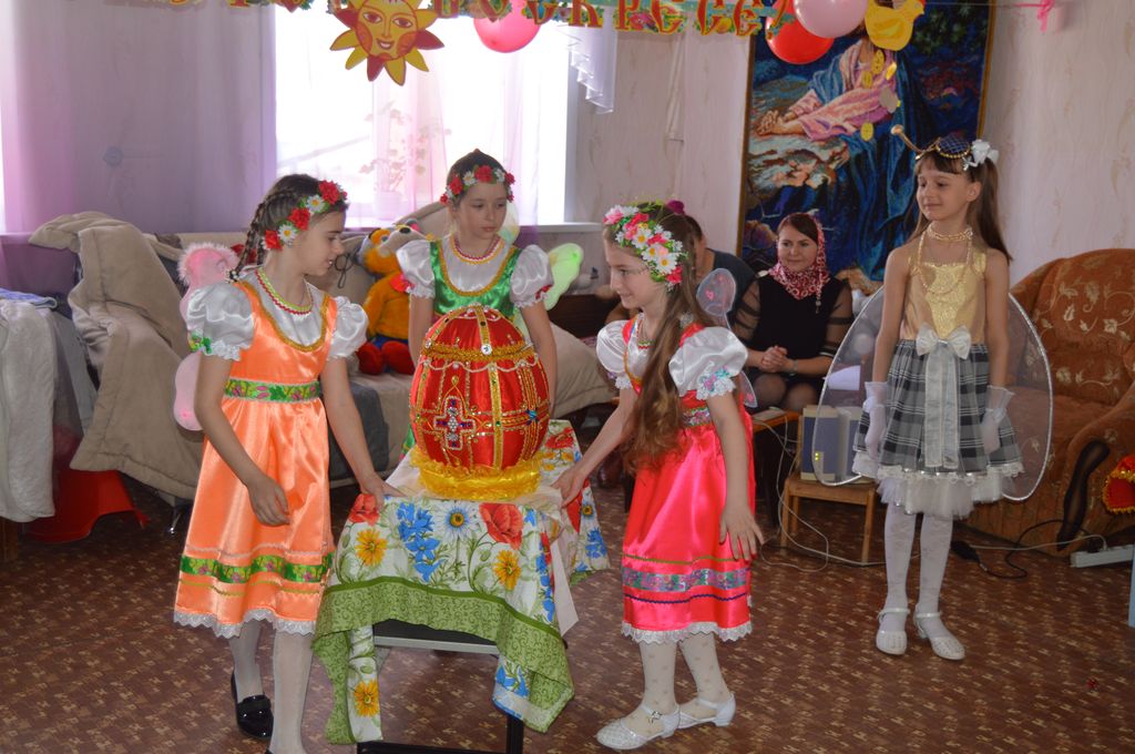 В продолжение дней Пасхального периода в воскресной школе при Свято-Пантелемионовском храме г. Миллерово состоялся приуроченный к Пасхе Христовой приходской праздник, подготовленный силами педагогов и учащихся школы. Неоценимую помощь в подготовке костюмов персонажей постановки «На Пасху Муха-Цокотуха – именинница» и сладких пасхальных угощений оказали родители учащихся.