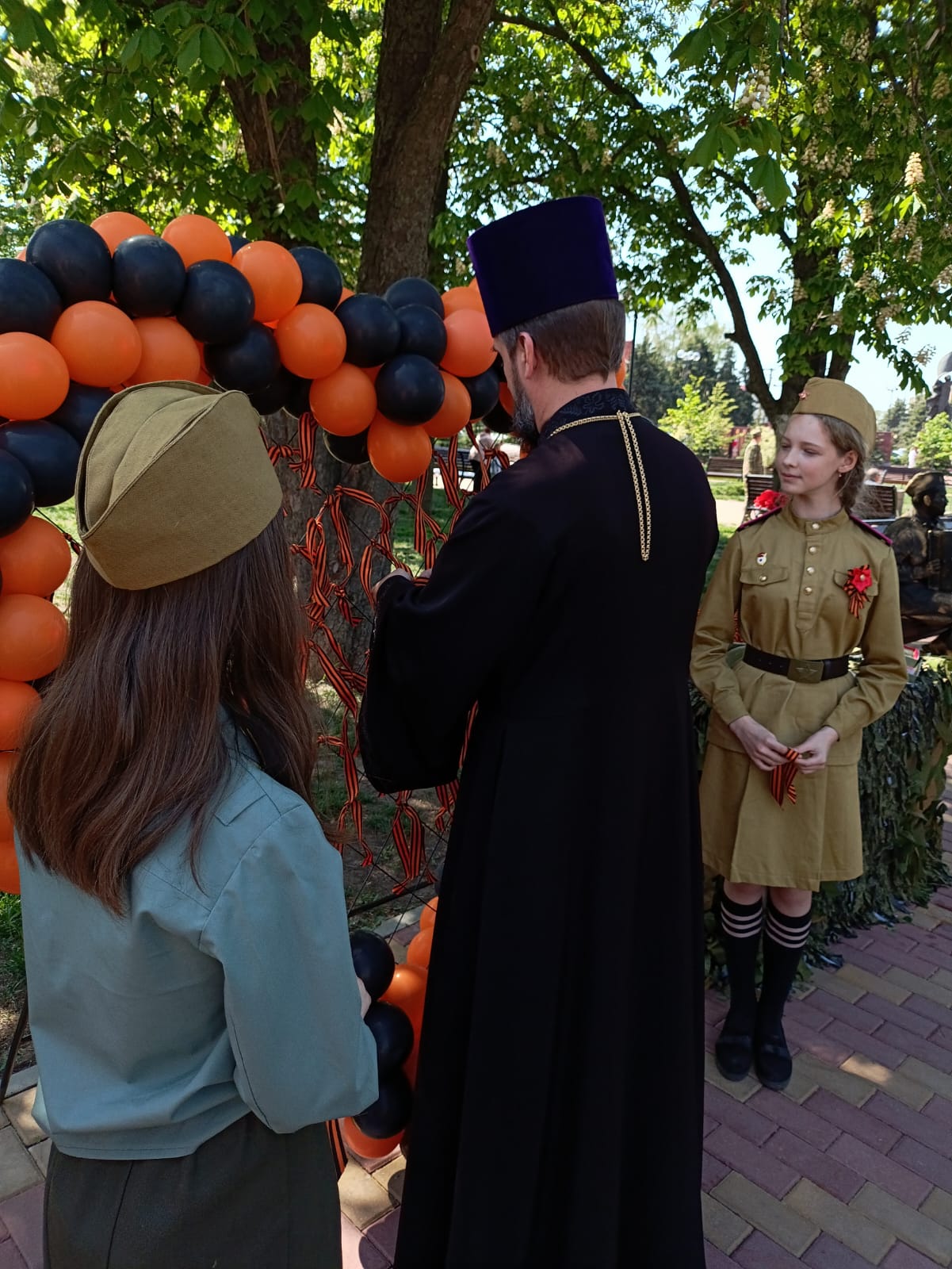 В день памяти святого великомученика Георгия Победоносца на площади 50-летия Победы п. Каменоломни, в рамках мероприятий посвященных 80-летию Победы в Великой Отечественной войне, для местных жителей была организована весьма значимая и общественно важная патриотическая акция – раздача Георгиевских ленточек, как видимого знака живой памяти наших современников о героическом прошлом нашего Отечества.