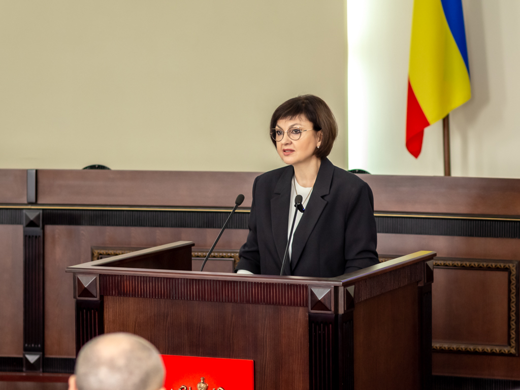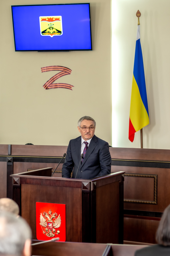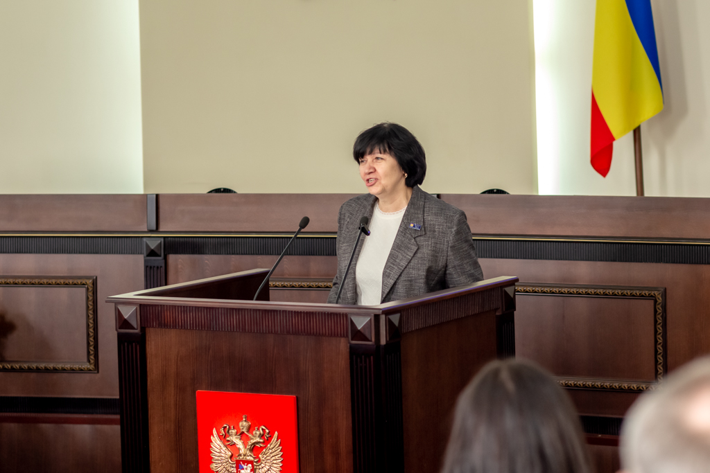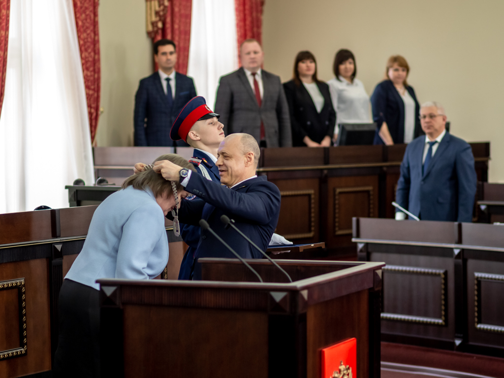 Символ главы муниципального образования ей вручил председатель городской Думы – глава города Шахты с 2023 по 2025 год Константин Корнеев.