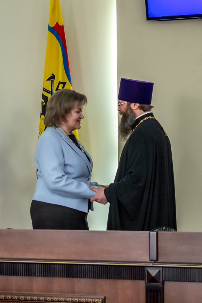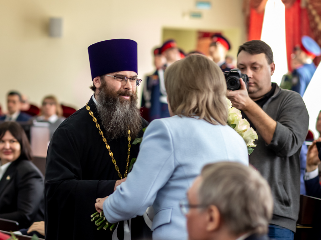 Иерей Александр Теличкин поздравил избранную главу города Шахты Людмилу Овчиеву с вступлением в должность