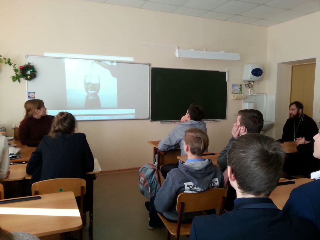 В преддверие новогодних каникул священник рассказал детям о вреде алкоголя на здоровье тела и души. Также дети посмотрели короткометражный фильм.