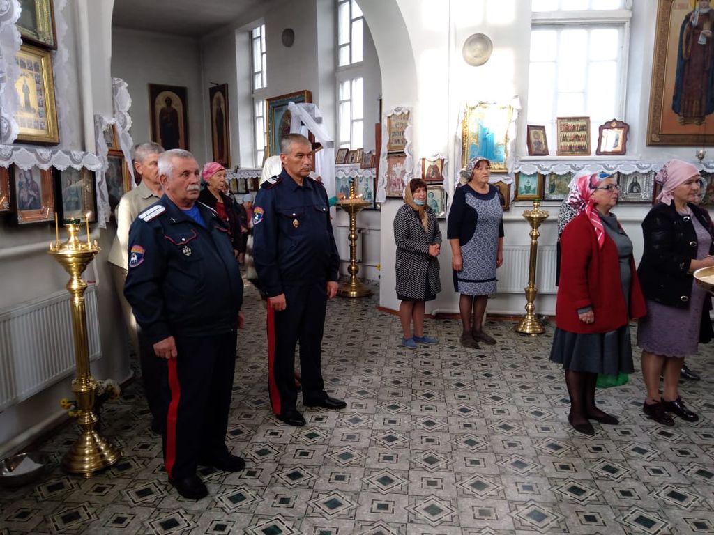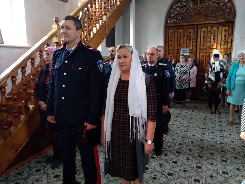 Казаков поздравил духовник иерей Сергий Сидоров поздравил казаков с Покровом Пресвятой Богородицы и пожелал мирной жизни под Ее покровом, здоровья и отметил, что образ Пресвятой Богородицы оберегал казаков в походах и в мирской жизни.