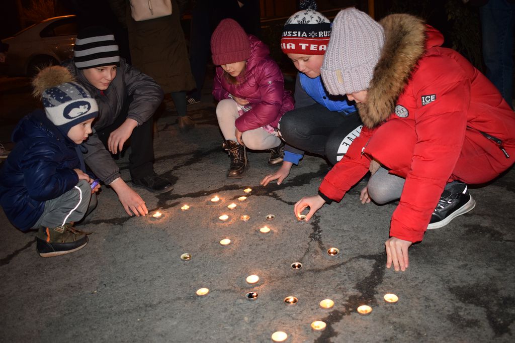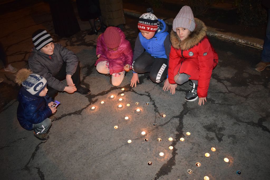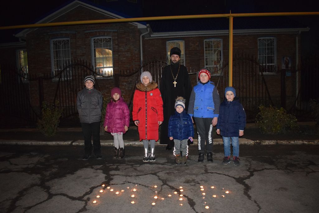 Для учащихся воскресной школы молодежный семейный клуб «Верность» при поддержке учителей и родителей организовал памятную патриотическую акцию, посвященную святому князю. В завершение акции учащиеся воскресной школы выложили из зажженных свечей слово «мир».