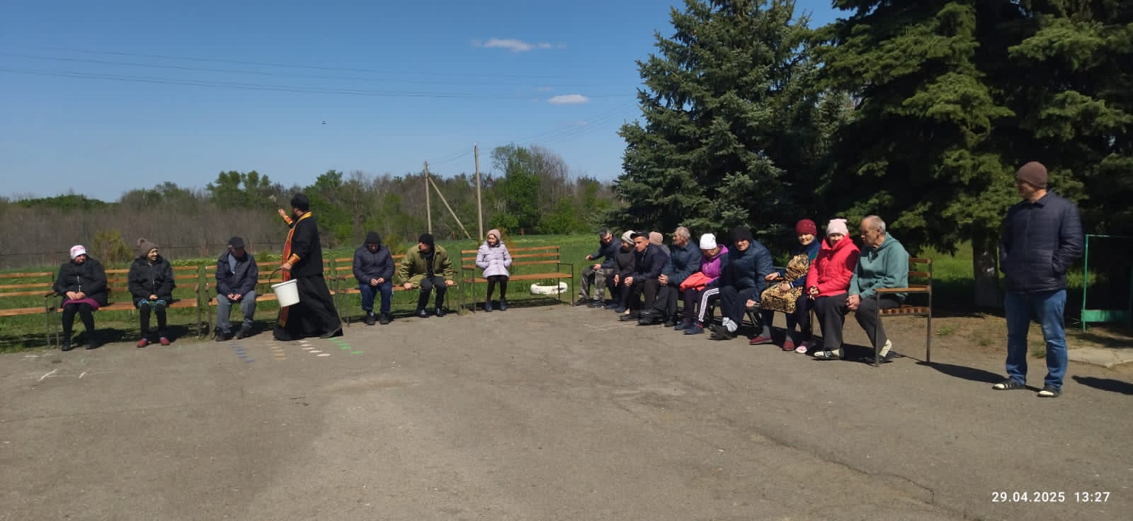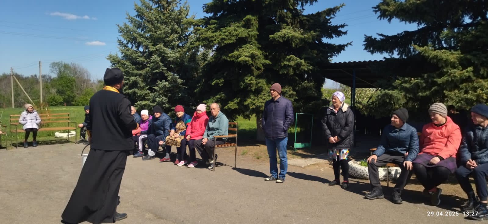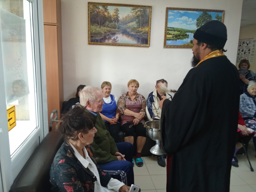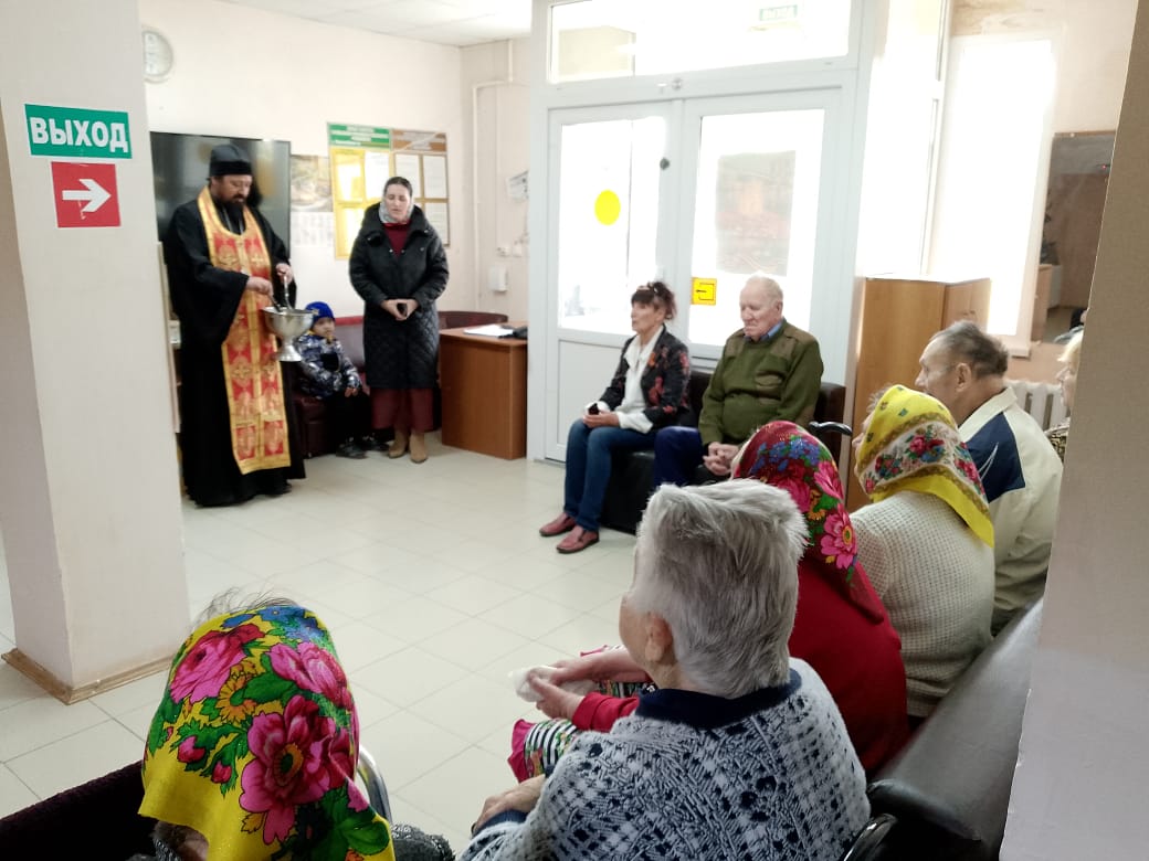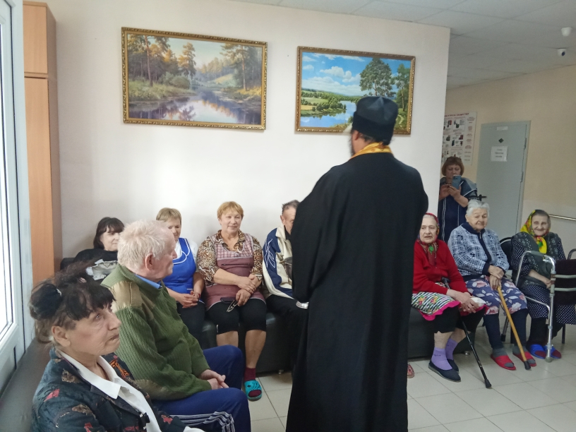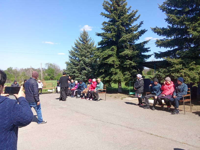Также отец Иоанн навестил постояльцев социально-реабилитационного отделения с. Первомайское, где передал праздничные подарки и сладкие угощения, поздравил всех проживающих и сотрудников со Светлым Христовым Воскресением.