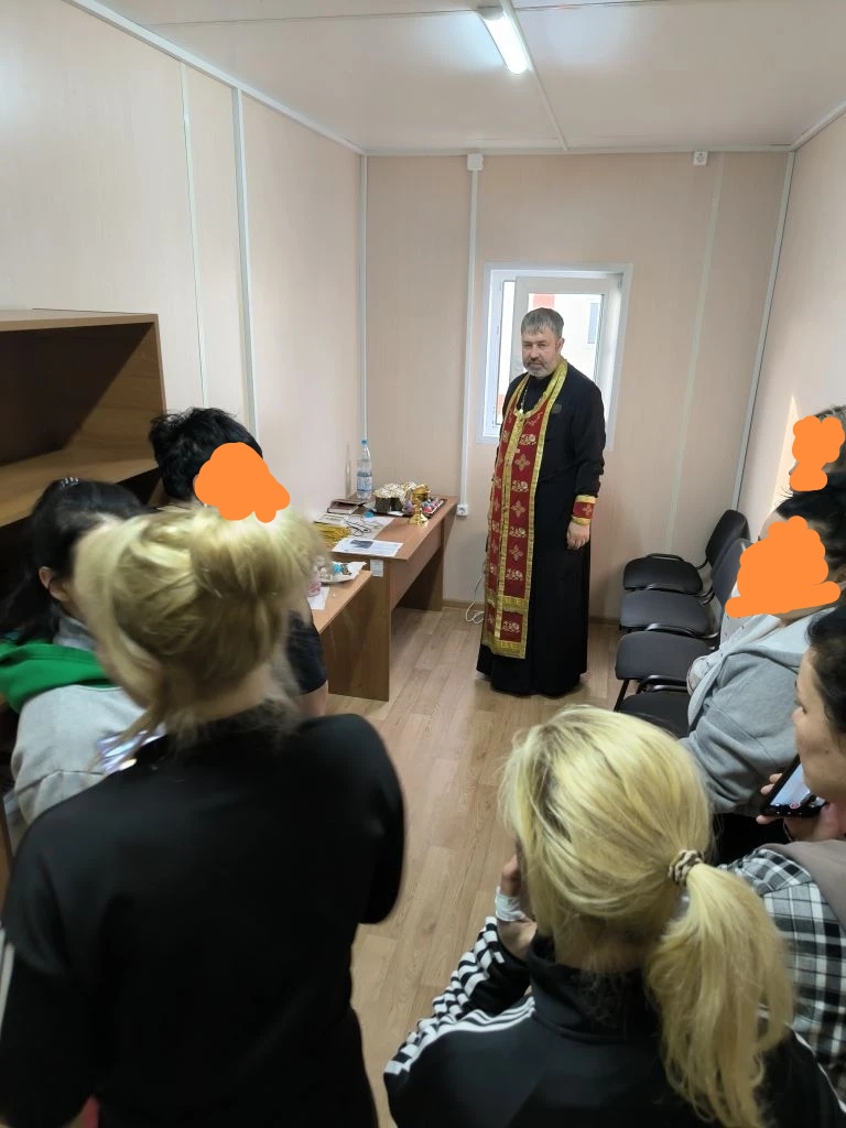 Священник поздравил сотрудников и воспитанниц исправительного центра с Христовым Воскресением и освятил приготовленные куличи. После освящения все желающие смогли пообщаться со священником и задать вопросы.