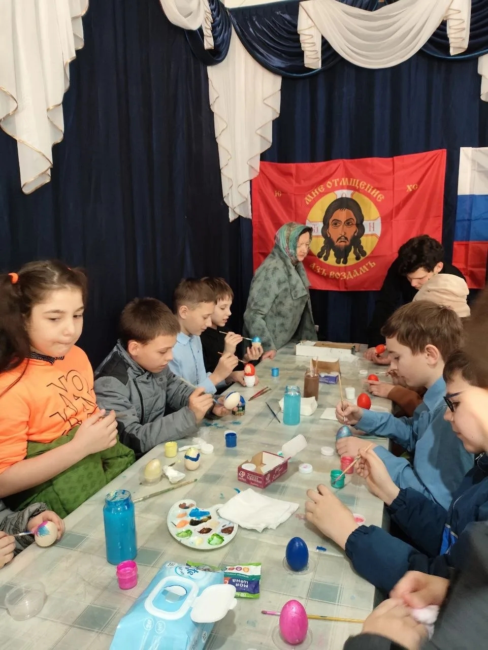 В преддверии светлого праздника Пасхи Господней на территории гуманитарного склада «Благо Дарю» при храме Архистратига Михаила п. Каменоломни, Октябрьского района состоялась творческая встреча. Её участниками стали ребята из православного Братства юных следопытов отряда святых Петра и Павла, а также учащиеся церковно-приходской воскресной школы Благовест».