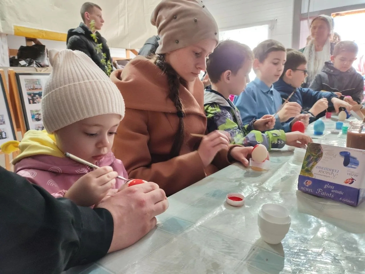 Для детей был организован мастер-класс по росписи декоративных пасхальных яиц. Под чутким руководством взрослых наставников юные мастера с большим увлечением создавали праздничные сувениры своими руками. Каждый участник постарался вложить в свою работу частичку души, чтобы позже подарить близким или украсить дом к Пасхе.