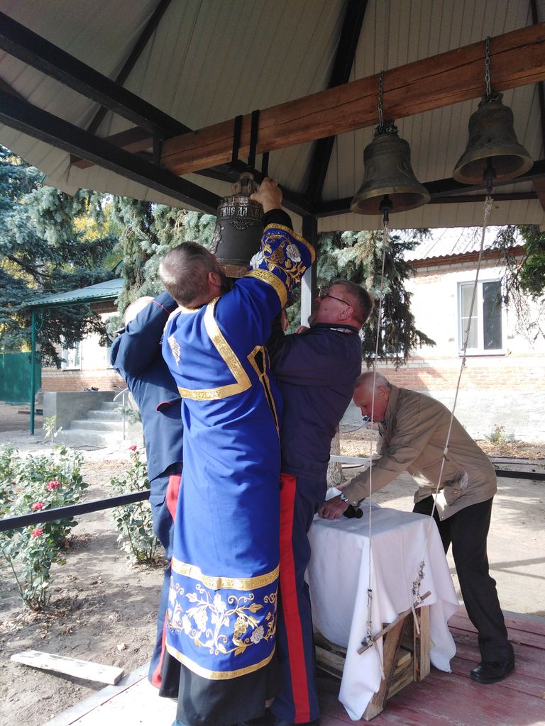 По завершении Литургии настоятель прихода протоирей Игорь Жевердан совершил чин освящения колокола и поздравил всех с праздником. Священнослужитель и поблагодарил диакона Игоря и Анну Ивановановнуза такой подарок.