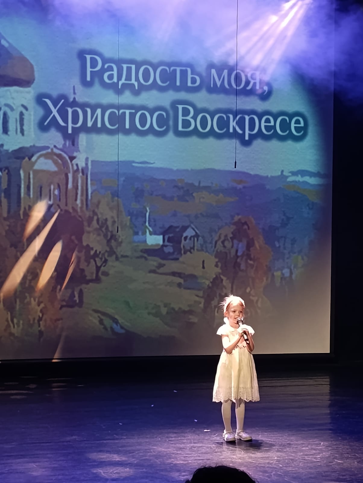 После чего выступили маленькие артисты (гран-при) Хореографический ансамбль «Глория» – «Пасхальный хоровод» (танец) хореограф Валентина Ивановна Маслюкова, музыкальный руководитель Валентина Петровна Миновская, воспитатель Юлия Васильевна Мордвинова, МАДОУ ЦРР д/с № 1 «Глория». И порадовали своим творчеством самые маленькие артисты Варвара Галенко – «Праздник Пасхи» Руководитель Наталья Николаевна Нищеглодова МБДОУ д/с № 28 «Сказка» , Даниил Алиев – «Святая Пасха» руководитель Валерия Сергеевна Шкутова, МБУДО «Детская музыкальная школа», Илья Кияшко – «Христос Воскрес» руководитель Татьяна Сергеевна Сорокина МБДОУ д/с № 4 «Алёнка».