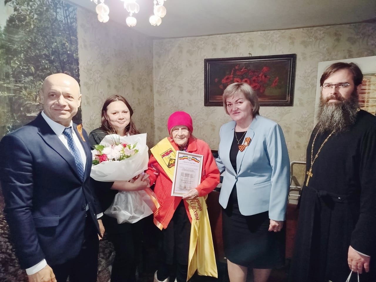 С 80-летием Великой Победы благочинный Александровск-Грушевского округа вместе с Администрацией города Шахты поздравили ветерана Великой Отечественной войны Александру Дмитриевну Писанную