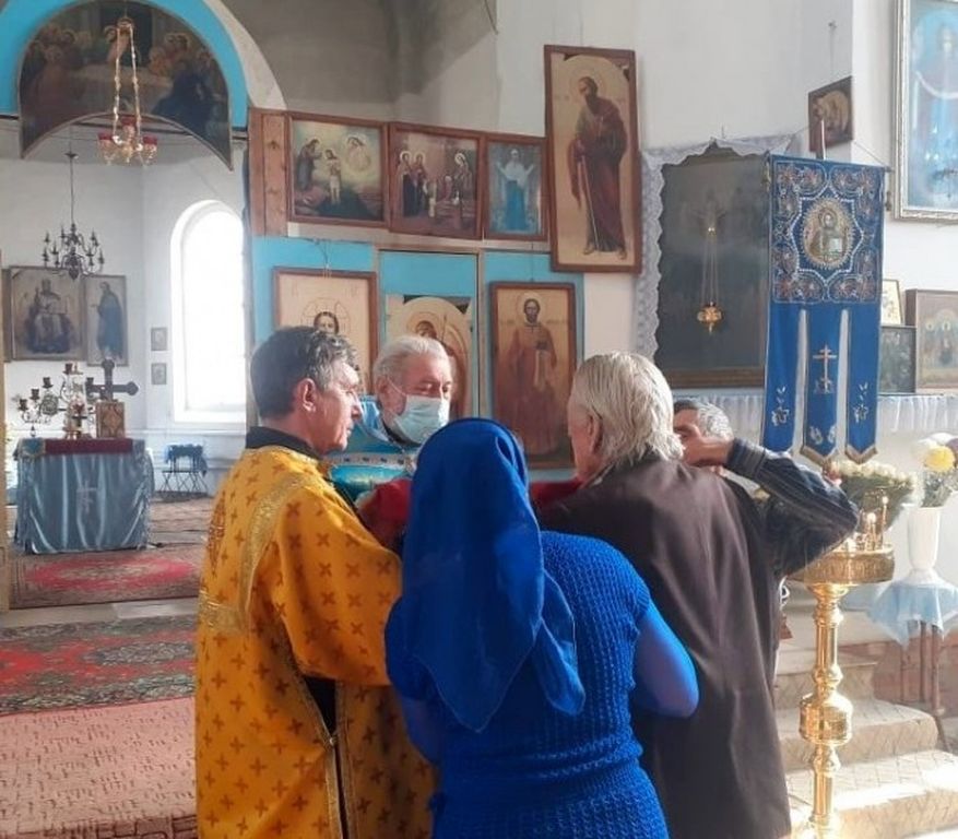 По завершении совместной молитвы и крестного хода благочинный приходов Нижнедонского округа протоиерей Сергий Яценко поздравил жителей станицы Кривянской Октябрьского района с престольным праздником и днем Покрова Божией Матери.