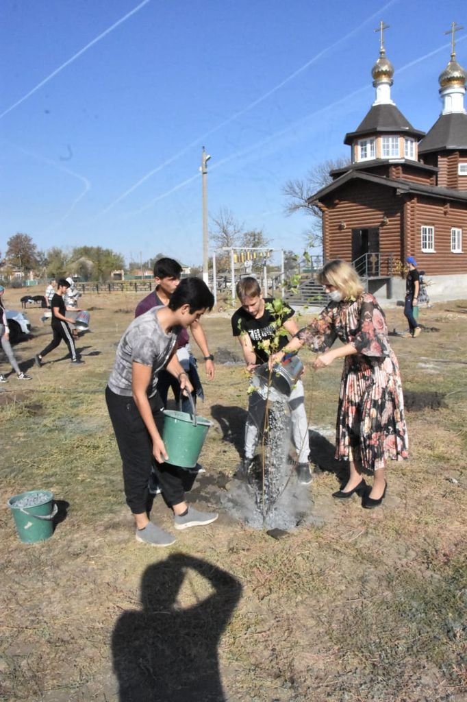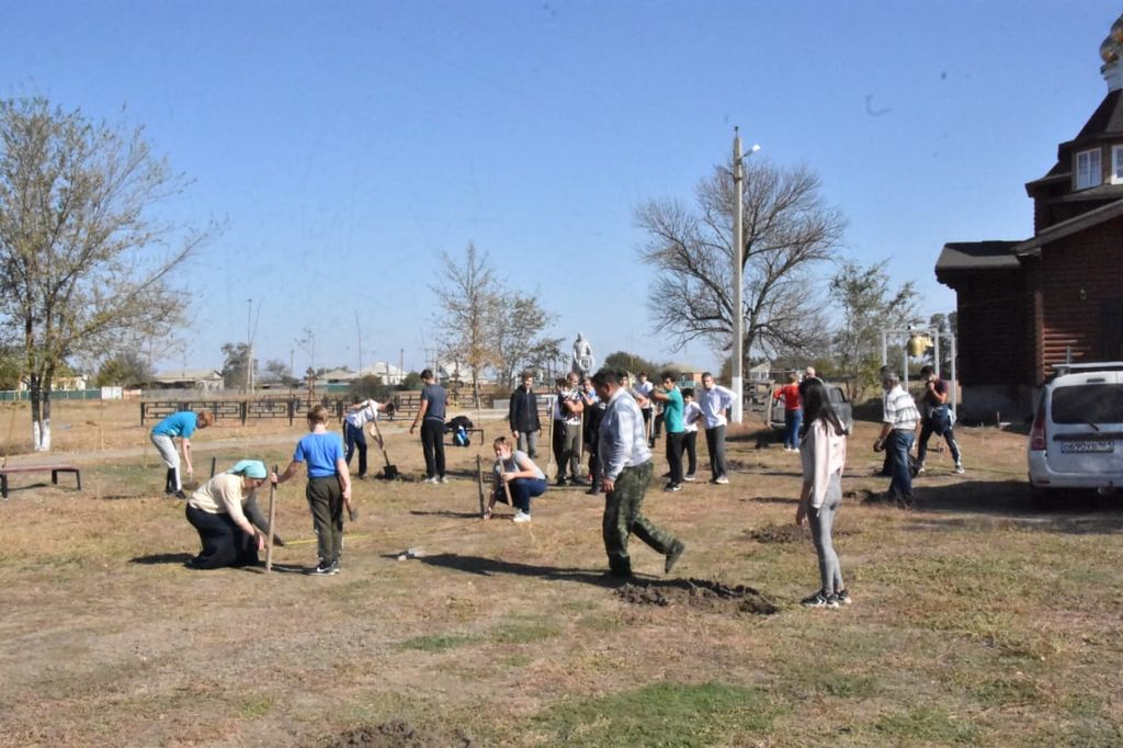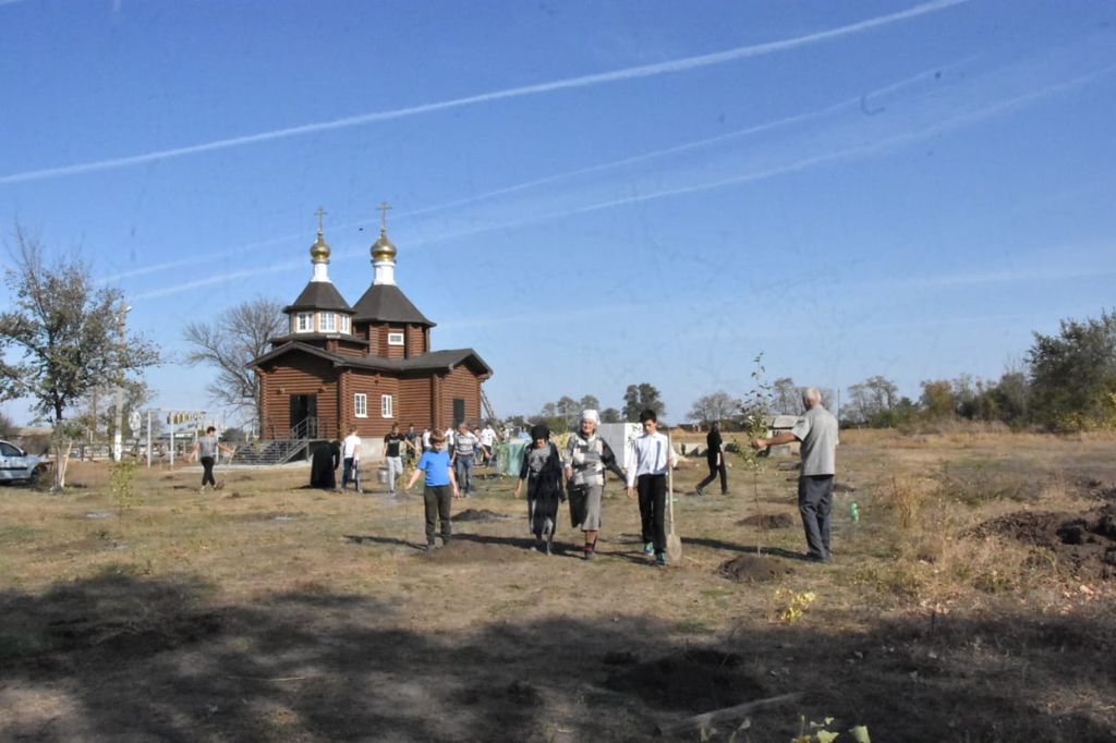 В день древонасаждения в хут. Красный Багаевского района при инициативе иерея Андрея Павленкова был заложен Покровский парк