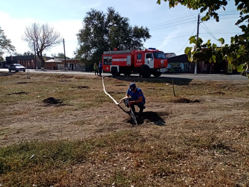 В высадке деревьев приняли участие начальник районной полиции Ирина Михайловна Бакало, глава Администрации хут. Красный Владимир Анатольевич Охматовский, начальник пожарной части 218 Алексей Викторович Богучаров, а также пожарные расчеты данной части.