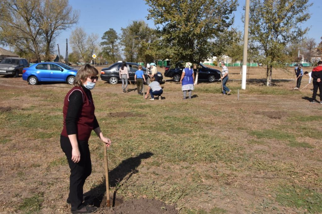 Приняли участие в высадке деревьев в будущем парке директор МБОУ Красненской средней школы Багаевского района Ольга Николаевна Букша, старшеклассники Красненской средней школы, директор МБОУ Первомайской средней общеобразовательной школы Багаевского района Нелли Александровна Харькова, старшеклассники первомайской школы.
