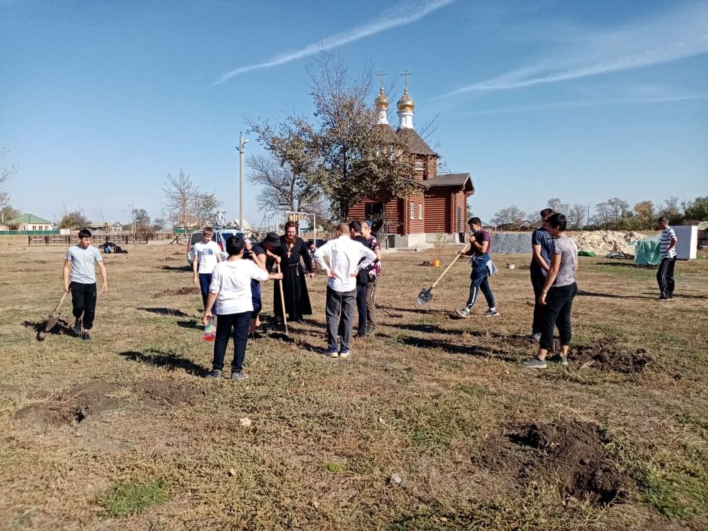 В день древонасаждения в хут. Красный Багаевского района при инициативе иерея Андрея Павленкова был заложен Покровский парк.