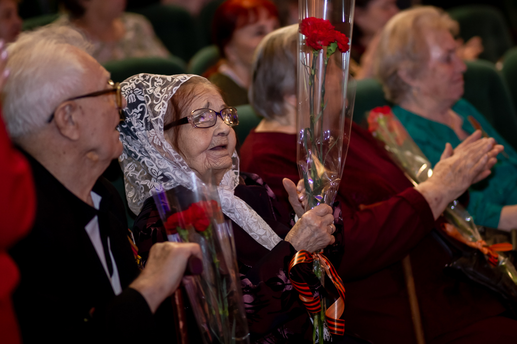 На празднике ветераны делились воспоминаниями, а артисты города представили концертную программу с военными песнями и стихами.