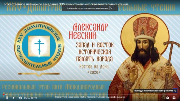 Состоялась видеоконференция торжественного пленарного заседания XXV Димитриевских образовательных чтений «Александр Невский: Запад и Восток, историческая память народа».