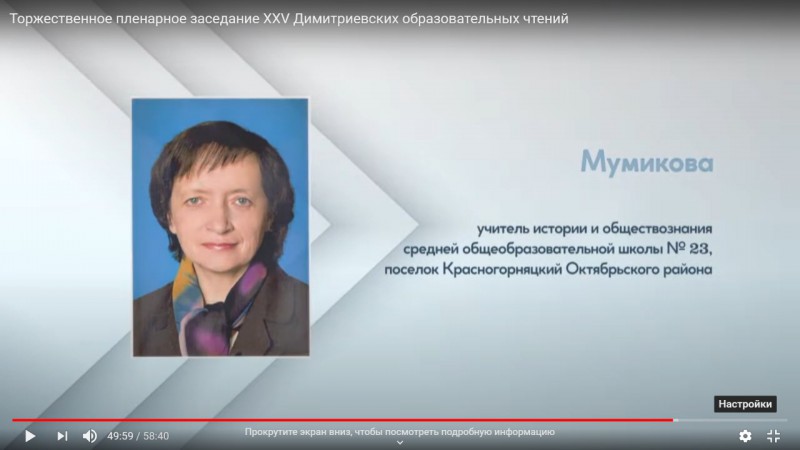 Благодарственным письмом Губернатора Ростовской области награждена Мумикова Светлана Ивановна – учитель истории и обществознания Муниципального бюджетного общеобразовательного учреждения средней общеобразовательной школы № 23.