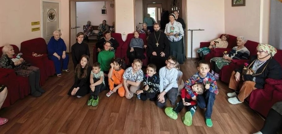 Забота о ближних: визит благочинного и воспитанников воскресной школы в пансионат для пожилых людей