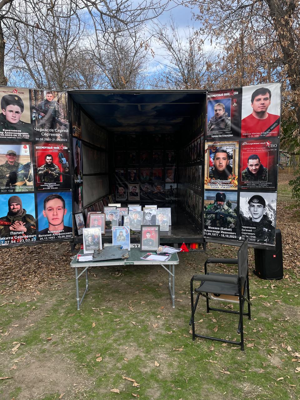 На мероприятии была представлена военная техника и передвижной фургон памяти погибших участников СВО.
