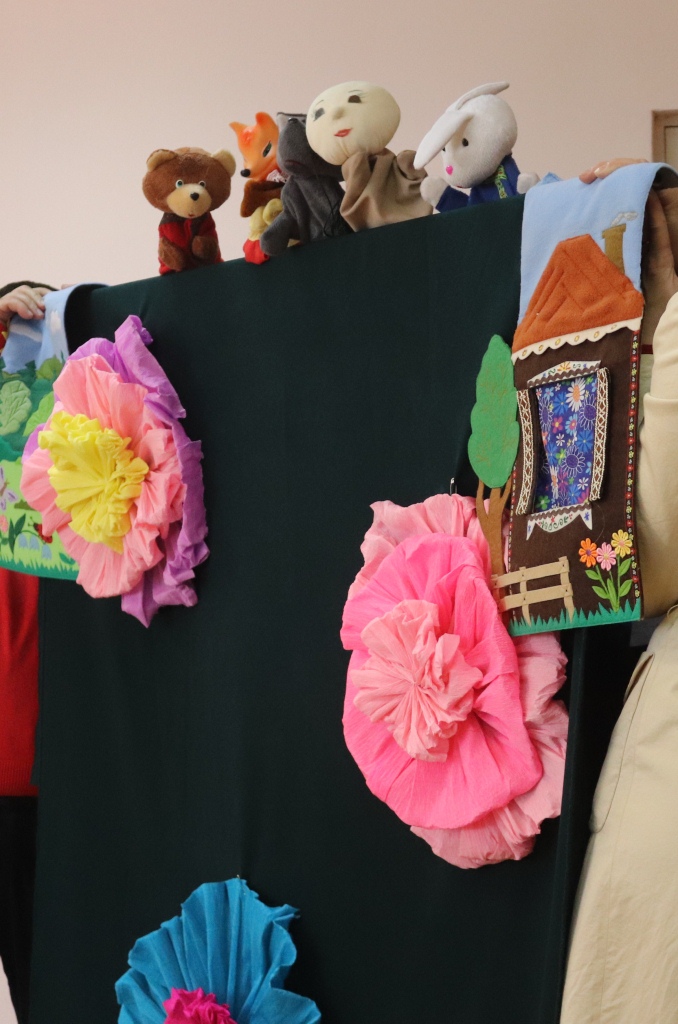 Своими силами дети подготовили сценку кукольного театра, викторины и конкурсы, а также подарки для пожилых людей.