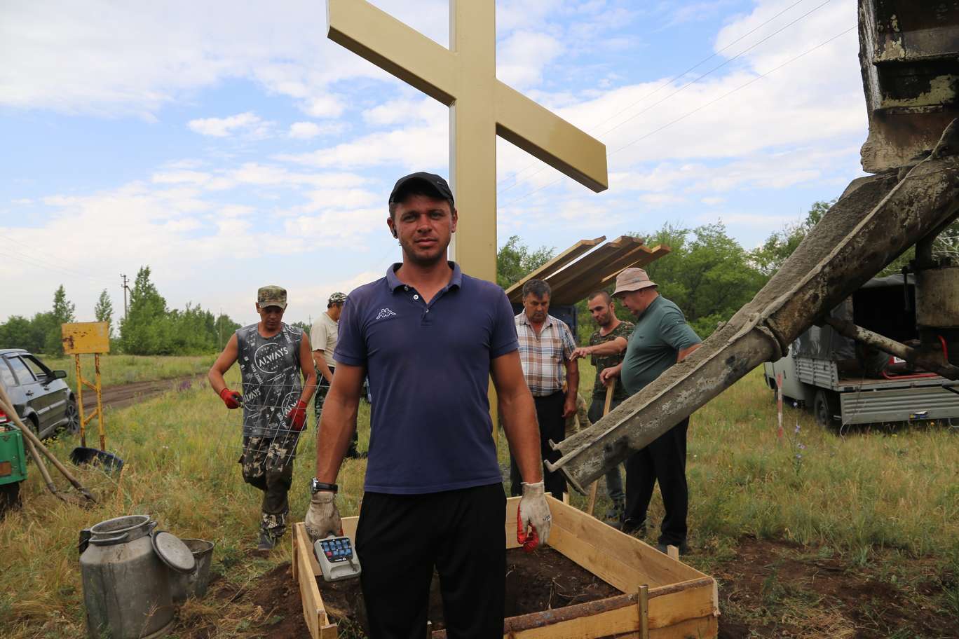 Инициатива установить новые поклонные кресты на въезде в райцентр принадлежит главе района Александру Михайловичу Шевцову, индивидуальному предпринимателю Владимиру Григорьевичу Цвыченко и Сергею Геннадьевичу Саламатину. Они же стали разработчиками проекта и организаторами работ по его осуществлению. А Владимир Григорьевич — еще и спонсор этого благого и столь важного дела.