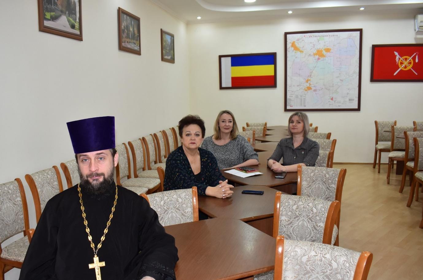 В работе заседания в режиме видеосвязи приняли участие представители Общественной палаты Октябрьского района и заместитель главы Администрации Октябрьского района Александр Байздренко, а также благочинный приходов Нижнедонского округа, председатель отдела религиозного образования Шахтинской епархии протоиерей Сергий Яценко.