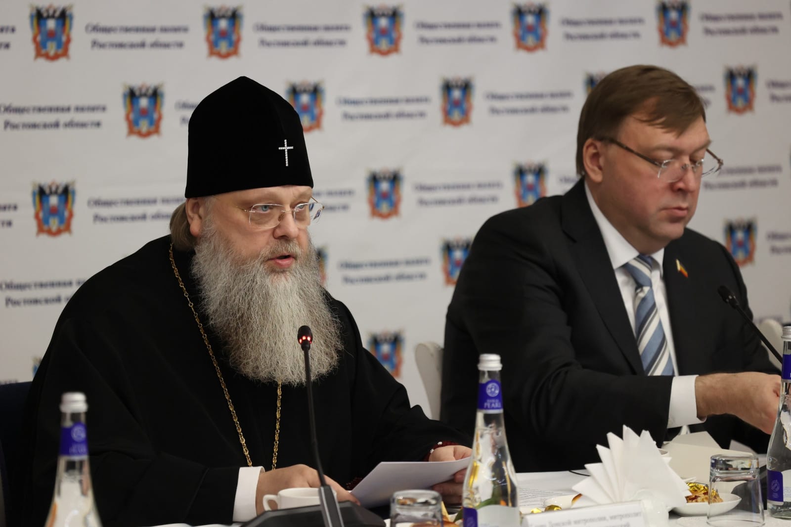 В совещании приняли участие председатель Законодательного Собрания Ростовской области Александр Ищенко, митрополит Ростовский и Новочеркасский Меркурий, председатель Общественной палаты Ростовской области Вячеслав Кущев, а также члены Общественной палаты Ростовской области.