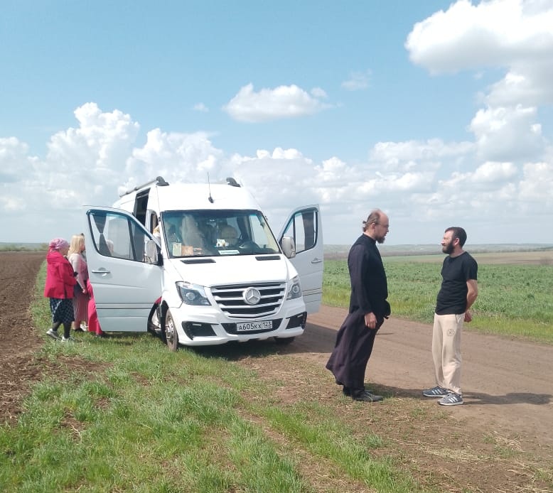 Вместе со священнослужителем паломники совершили поездку к Поклонному кресту, расположенному за слободой, на месте расстрела и захоронения казаков в 1920 году во время подавления «Камышового восстания», где помолились об упокоении душ верных сынов Донского казачества.