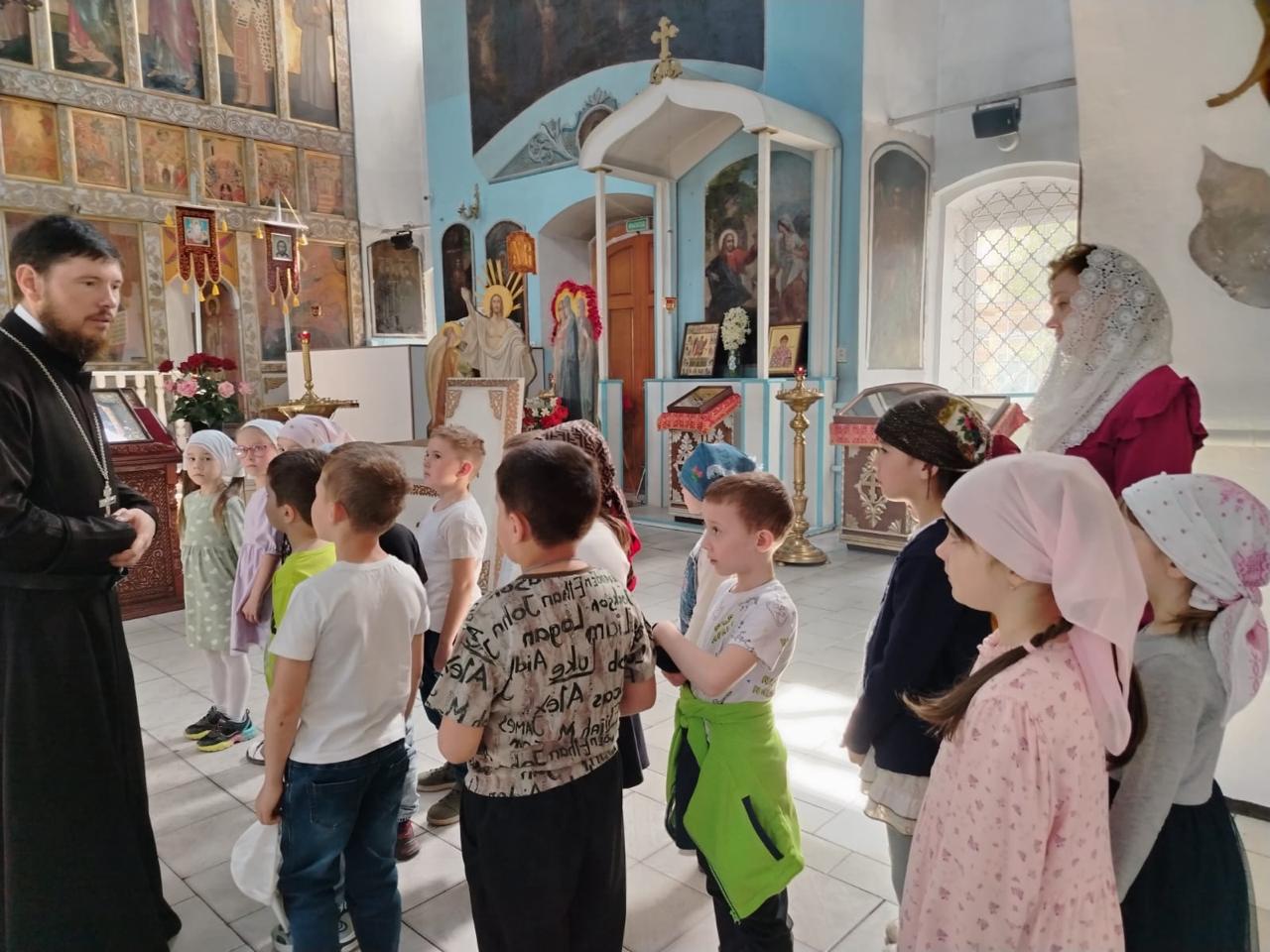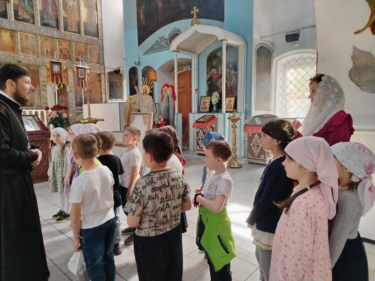 Клирик храма иерей Алексей Ряшкин провел встречу с детьми, рассказал о празднике Великой Пасхи Христовой. Ребята узнали, как важно приходить на службу в храм, священник научил детей правильно креститься, ставить свечи. Ребята приложились к иконам и поставили свечи за здравие родных и близких.
